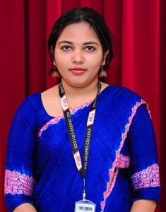Assoc. Prof. Aparna T S is a faculty member in the Commerce Department with 21 years of teaching experience. She holds an M.Com degree and is pursuing a Ph.D. Her teaching specializations include Accounting, Taxation, and Finance. She has published research papers and participated in seminars and Faculty Development Programs. Her dedication to teaching supports the department’s mission of delivering quality commerce education.