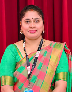 Assoc. Prof. Nagratna M is the Head of the Hindi Department with 18 years of teaching experience. She holds an M.A in Hindi and a Diploma in Translation. Her teaching specializations include Hindi Literature, Drama, Poetry, and M.A Hindi (Surdas). She has participated in national and international seminars and Faculty Development Programs. Her academic leadership supports the growth and enrichment of Hindi studies within the institution.